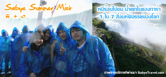เที่ยวน้ำตกไนแองการ่าที่มีชื่อเสีงโด่งดัง ที่ตั้งอยู่ระหว่างชายแดนอเมริกา และแคนนาดา โดยลูกทัวร์สามารถนั่งเรือ Maid of the Mist ไปสัมพัส ถึงไอน้ำที่เกิดจากน้ำตกได้ ตอนช่วงระหว่างเดือน May-October |