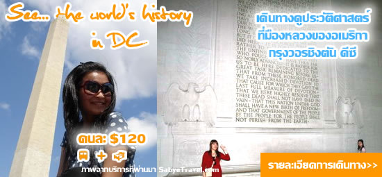 ชมสถานที่สำคัญต่างๆ เช่น ทำเนียบขาว สถานที่ทำงานและบ้านพักราชการของประธานาธิบดีสหรัฐ, อนุสาวรีย์วอชิงตัน, อนุสรณ์ลินคอร์น , อนุสาวรีย์เจฟเฟอร์สัน , ตึกรัฐสภา , สถานีรถไฟยูเนี่ยนสเตชั่น อันทันสมัย, สถาบันสมิธโซเนียน และ พิพิธภัณฑ์เครื่องบินและยานอวกาศ ราคารวม: